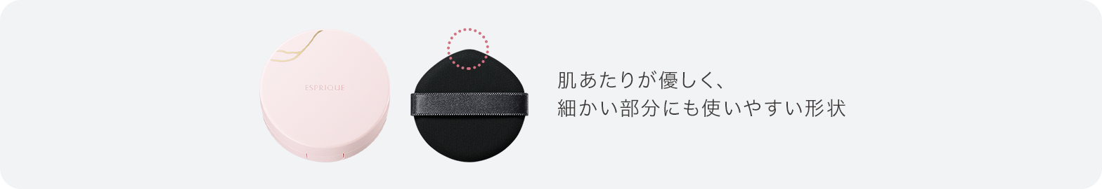 ◆肌をいたわるやさしいタッチで、キメ細かく均一な肌に仕上げるパフ付き。