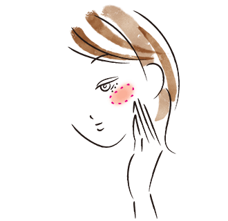 頰の高い位置にポンポンと色をのせるようになじませます。