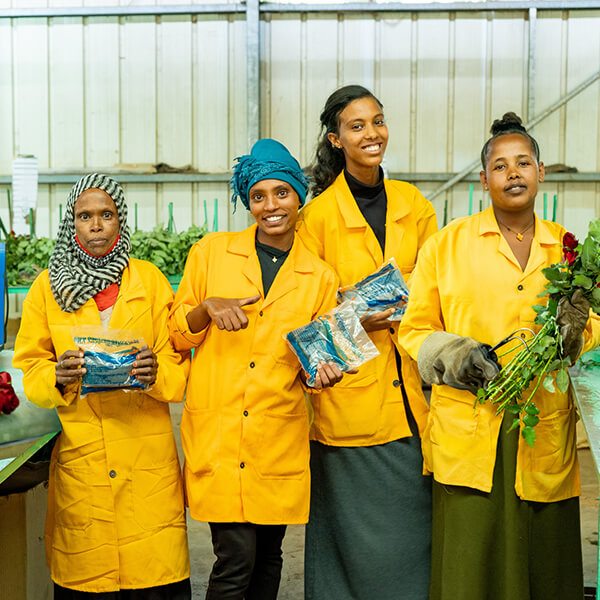 エチオピアのバラ農園で働く女性にお届けしております。