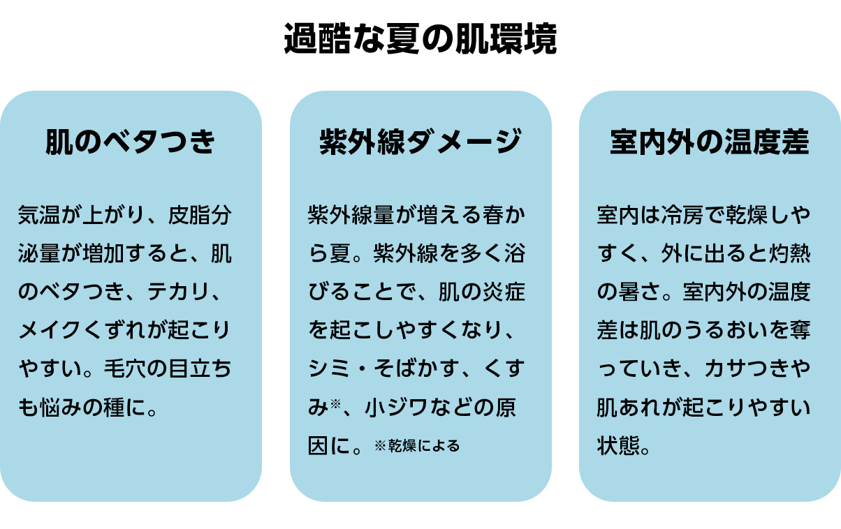 不快指数が上がる夏、肌を取り巻く環境も年々過酷に