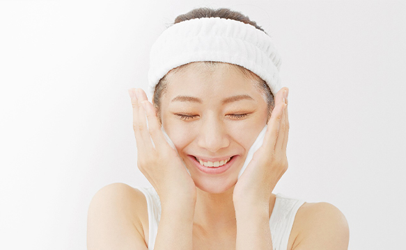 洗顔のときは、洗顔料を十分に泡立ててやさしく丁寧に洗います。皮脂を洗い流しすぎないように、ぬるま湯を使ってください。その後、できるだけ早く保湿ケアをして肌に水分や保湿成分を与えましょう。