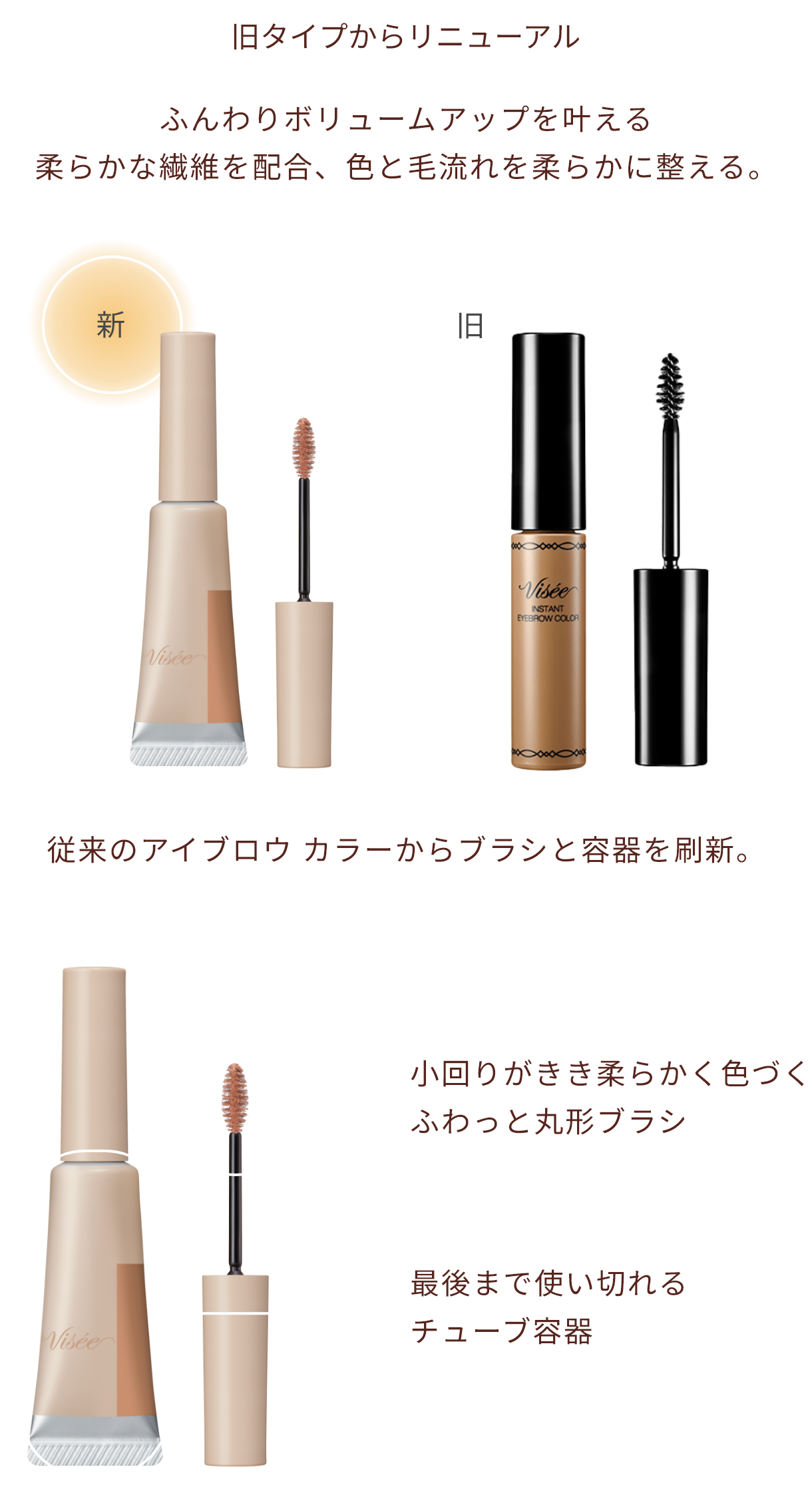 毛が立ち上がったような立体的でふんわりとした眉に導きます。 - ソフトキープ成分配合。柔軟な膜を形成し、パリッと固まりすぎず自然な毛流れをキープします。