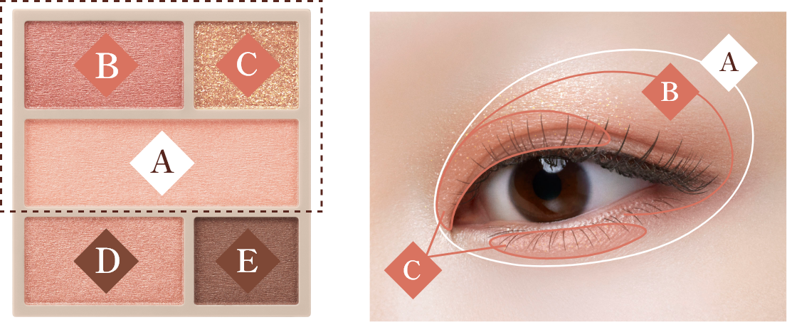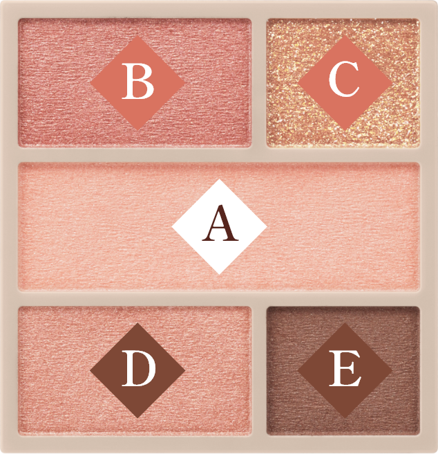 - 1つのパレットで2つの対照的な目もとを叶える、4質感の5色セットアイカラーです。