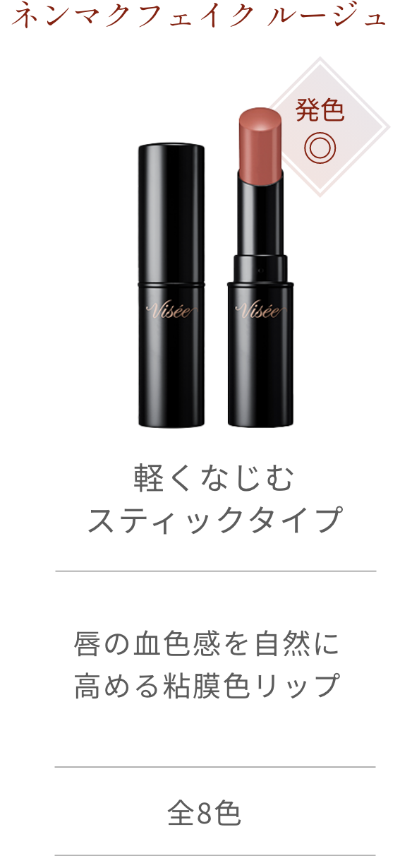 なめらかな塗り心地や透明感・色持ちがパワーアップ。色ツヤ、密着。むっちり感まで偽装する進化形ネンマクフェイク ルージュ。